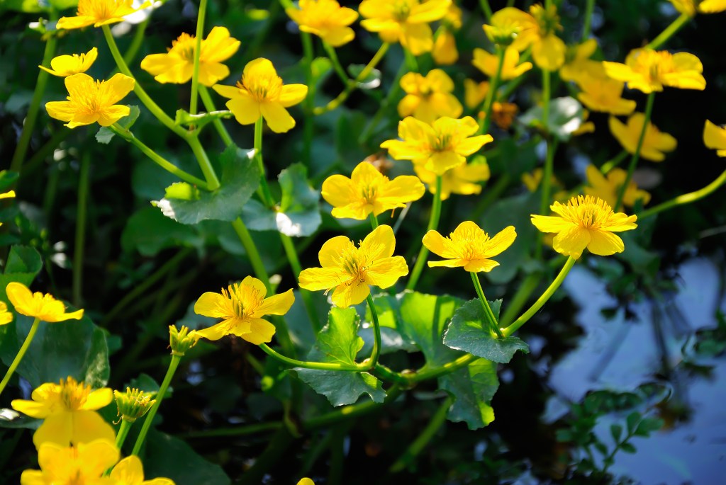 Common frog (Rana temporaria)Palmate newt (Triturus helveticus)Common toad (Bufo bufo) Photo by Gary Ellis on UnsplashGrey heron (Ardea cinerea)Male common darter dragonfly (Sympetrum striolatum) Marsh Marigold (Caltha palustris)Marsh Forget-Me-Not (Myosotis palustris)Bogbean (Menyanthes trifoliata)